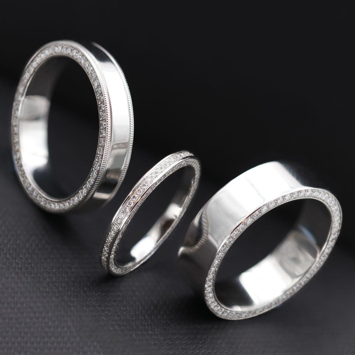 Alliance pour homme en platine 950 ornée d'un tour complet de diamants sertis latéralement sur 1 côté.