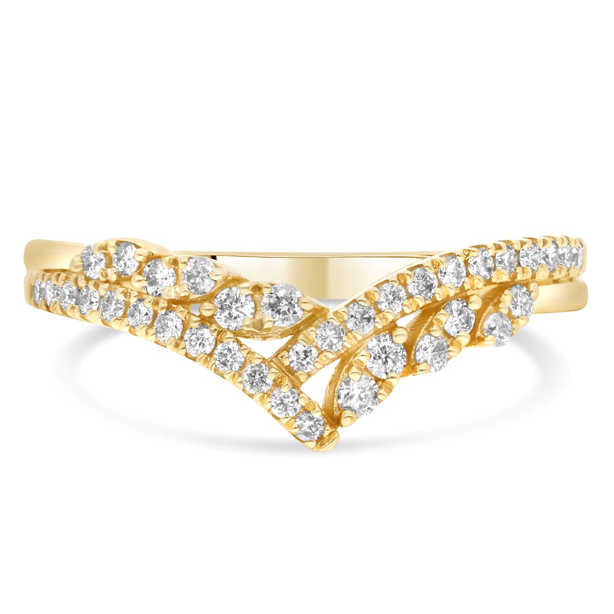 L'alliance la Magistrale en or jaune présente deux rangées de diamants ronds sertis en demi-tour. La largeur de la bague varie de 1.8 mm à 5 mm au centre.