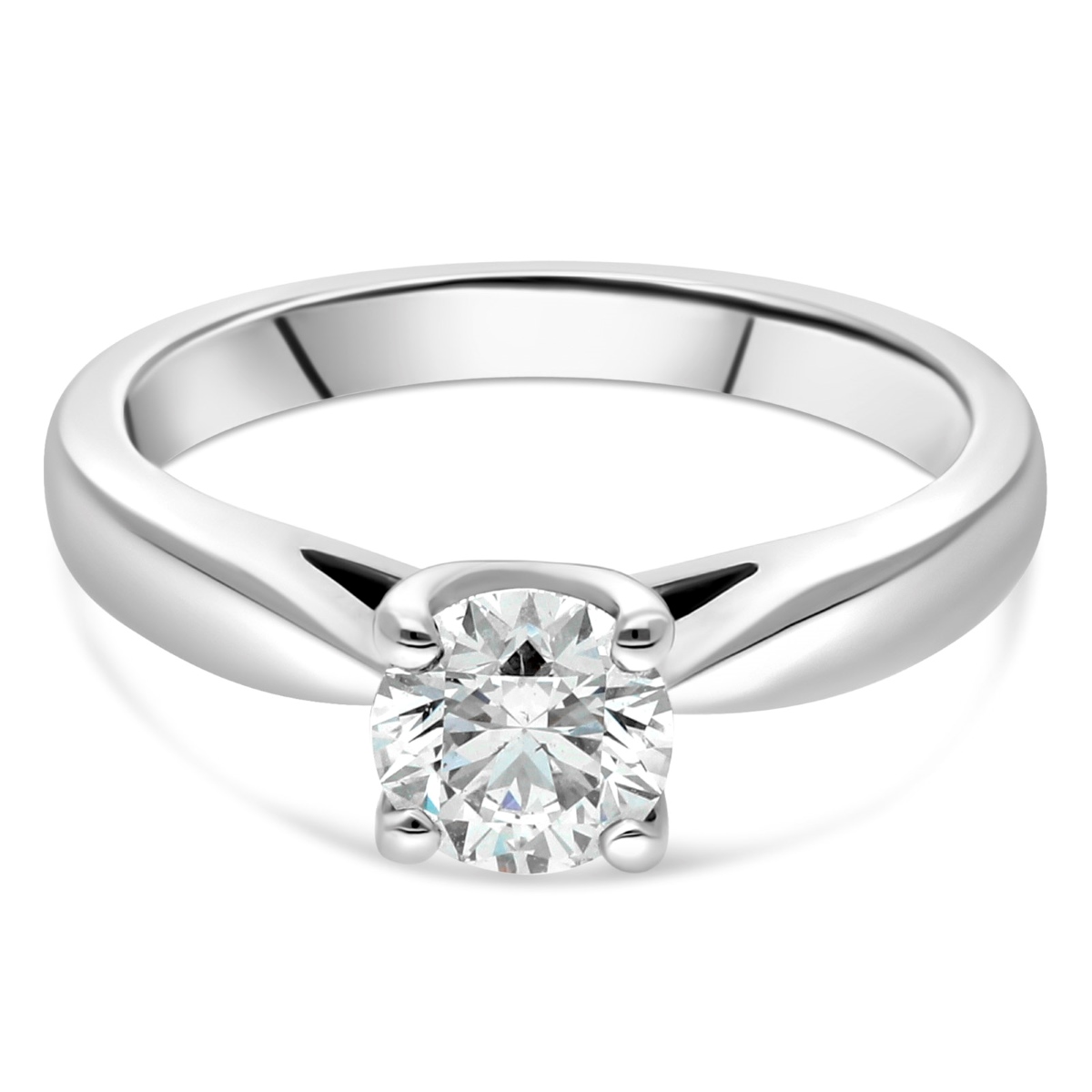 Classique et intemporelle, la bague de fiançailles diamant MATAIVA est sertie de manière à attirer toute la lumière sur sa pièce centrale, un magnifique diamant taille brillant. Même si le diamant est rond, le sertissage quatre griffes lui confère une forme légèrement carré. Elle se marie facilement avec toutes les alliances classiques en diamant demi tout et tour complet.