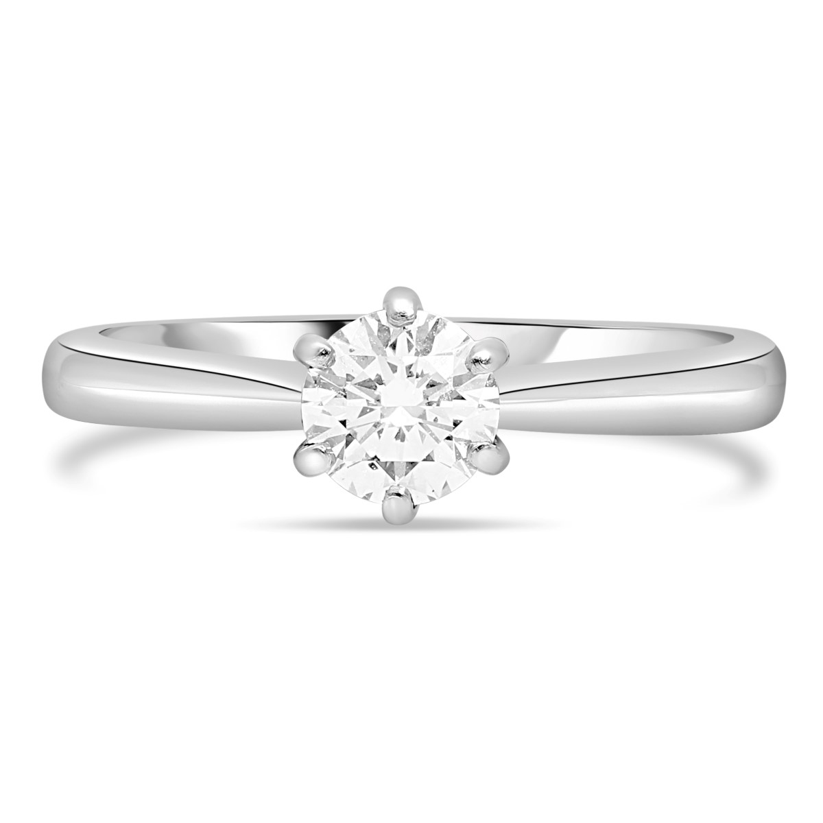 La bague de fiançailles diamant Manae est un solitaire classique qui met en valeur son diamant central unique. La blancheur du platine sublime davantage l’éclat de la pierre centrale. Son chaton à 6 griffes souligne la forme ronde du diamant et offre plus de sécurité de sertissage. La bague Manae forme un beau duo avec une alliance classique diamant tour complet ou demi tour.
