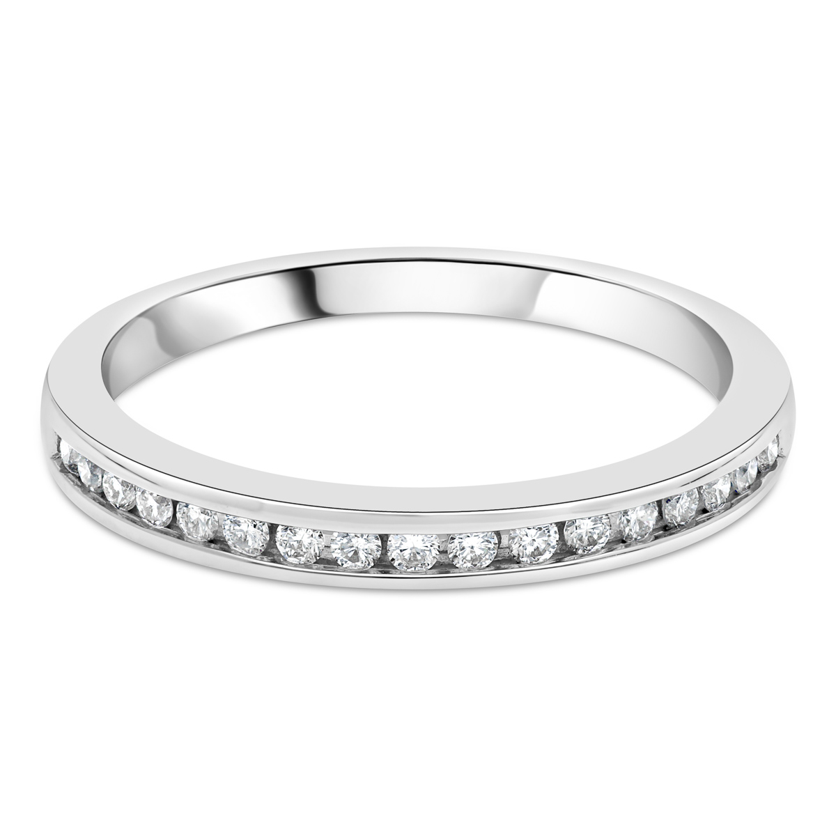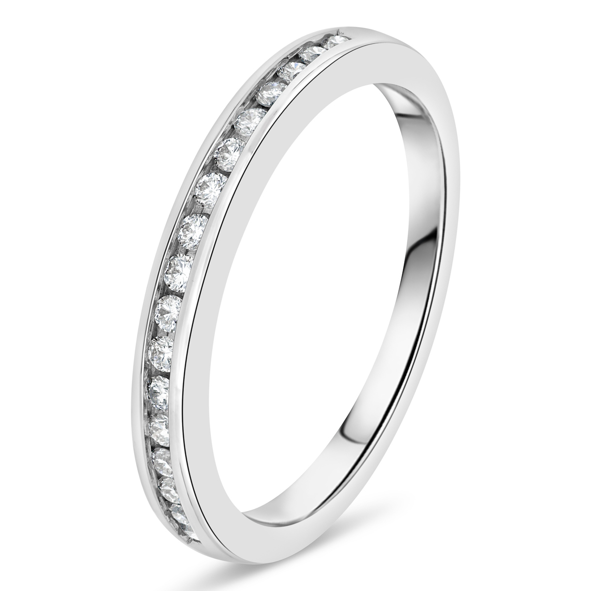 Alliance de mariage en diamants demi tour, serti rail fin. Sa largeur est de 2.5 mm.