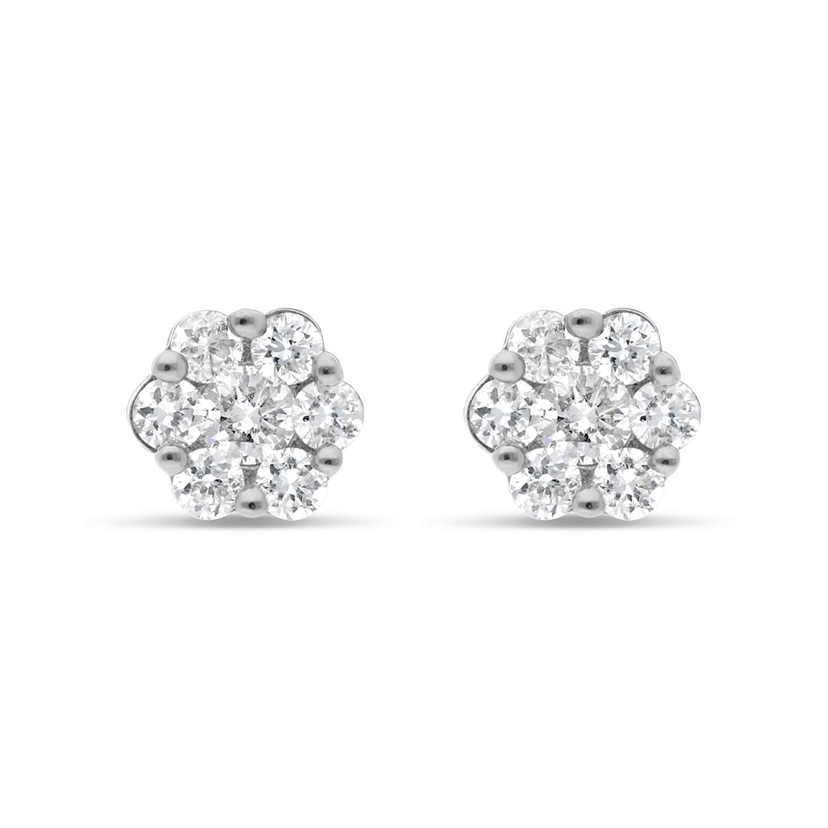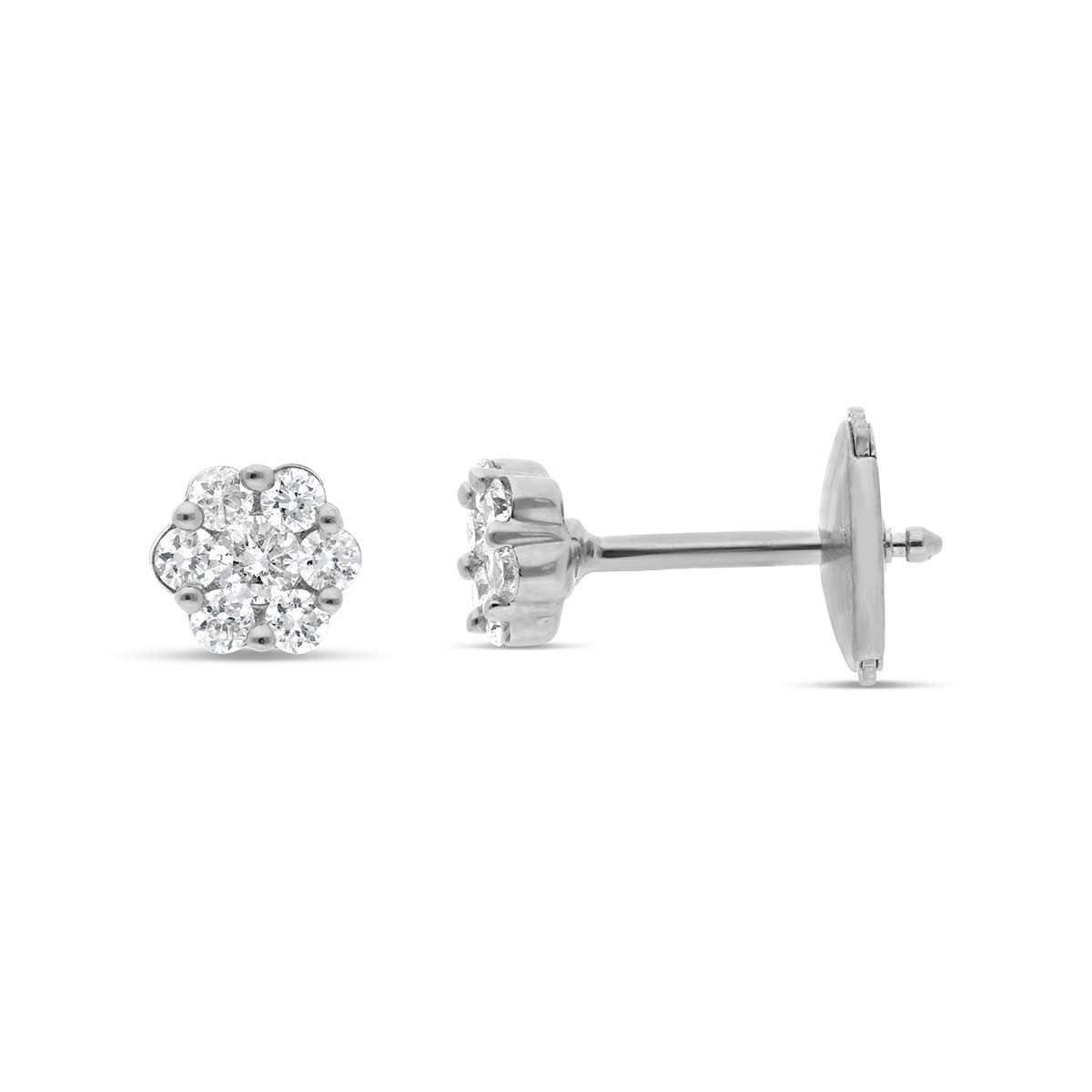 Clous d'oreille en diamants, pavés en fleur, au diamètre de 4,5 mm. Les clous sont pourvus d'un fermoir de sécurité.