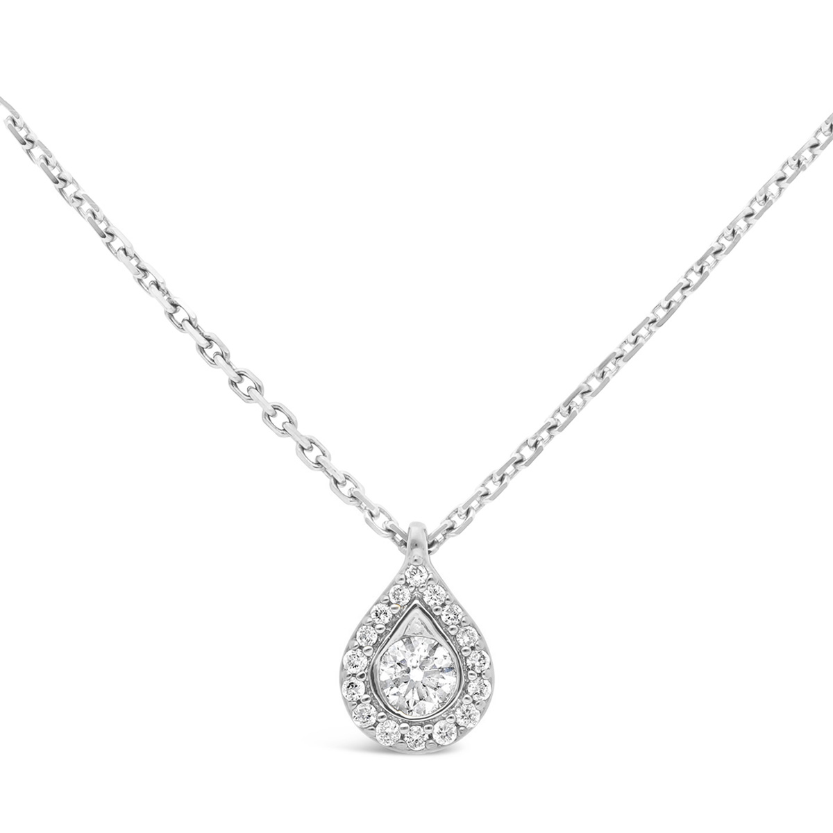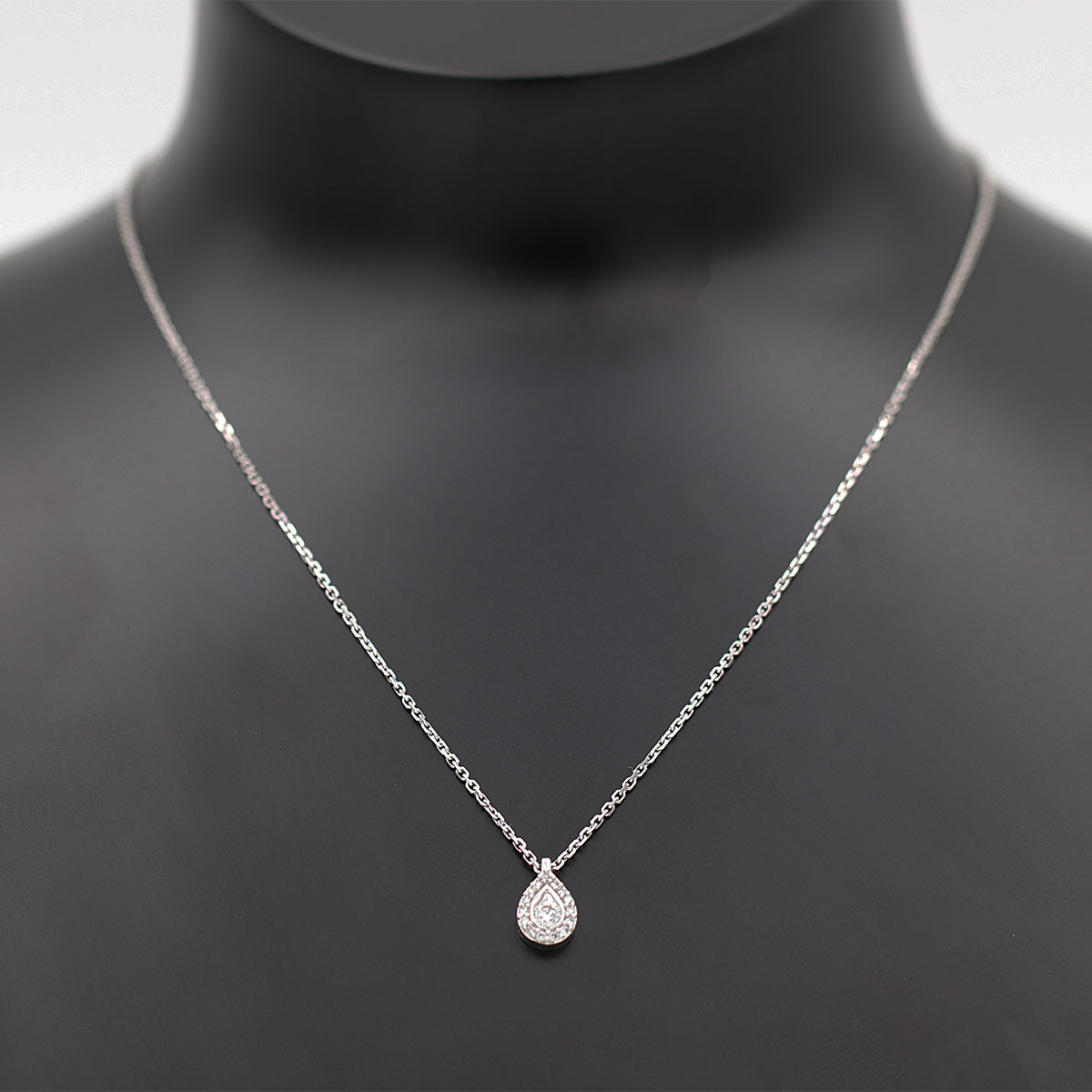 Collier en diamants pavé en poire avec une chaine maille forçat de 40 cm en or 750 millièmes. Les mesures du pendentif sont : la largeur de 6 mm et la longueur (avec la bélière) de 9,7 mm.