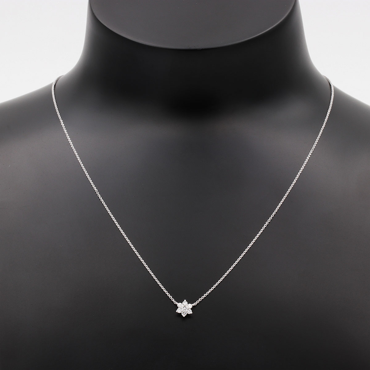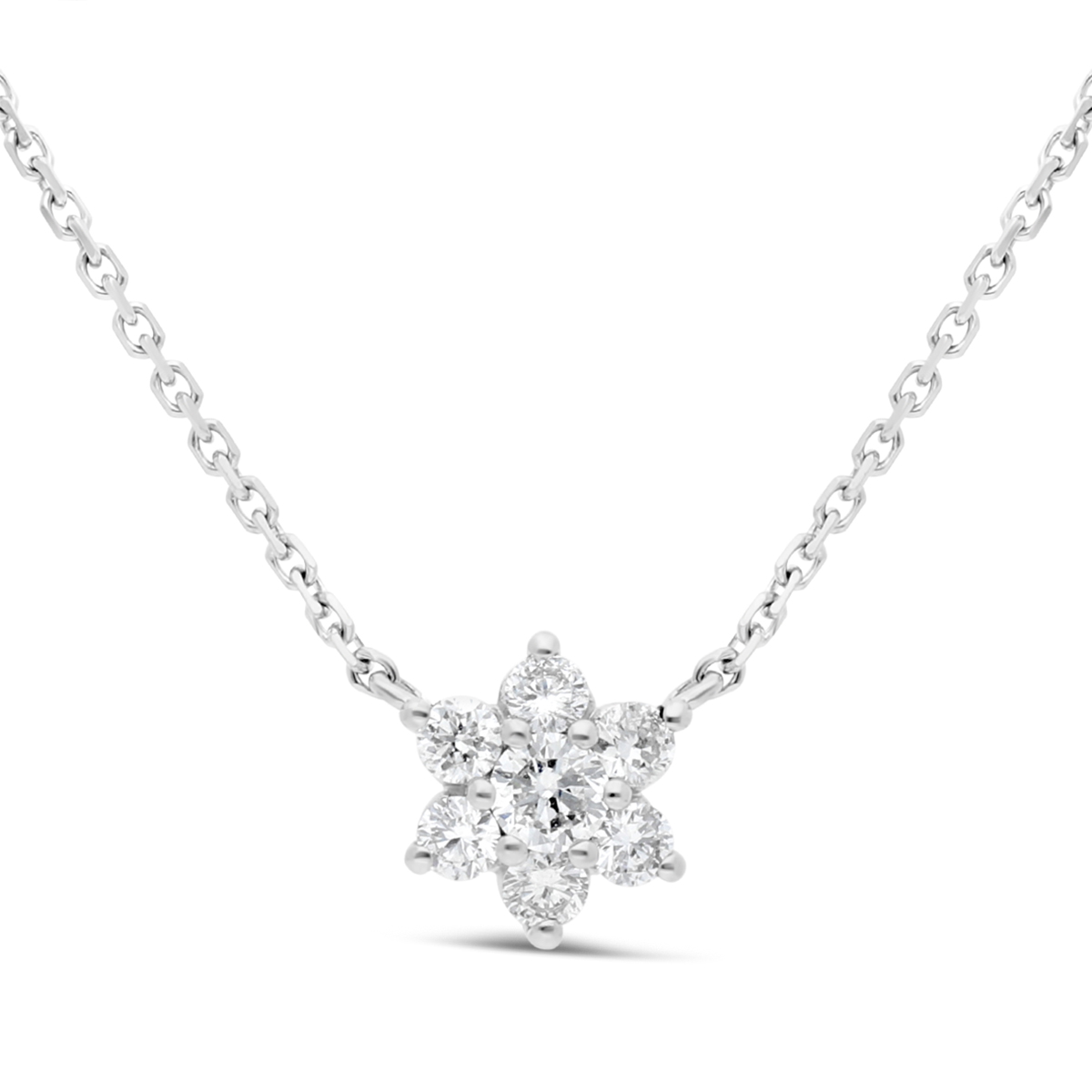 Pendentif en diamants pavés en étoile, mesurant 6,1 mm. Le pendentif est vendu aves sa chaîne en maille forçat de 42 cm. Le bijou est en or 750/1000.